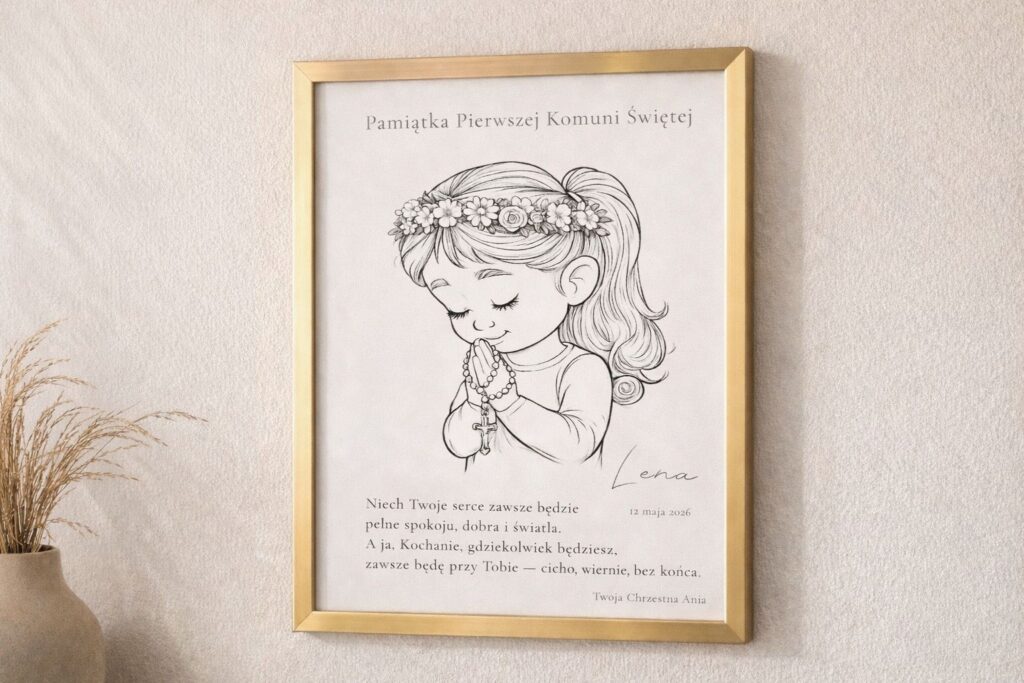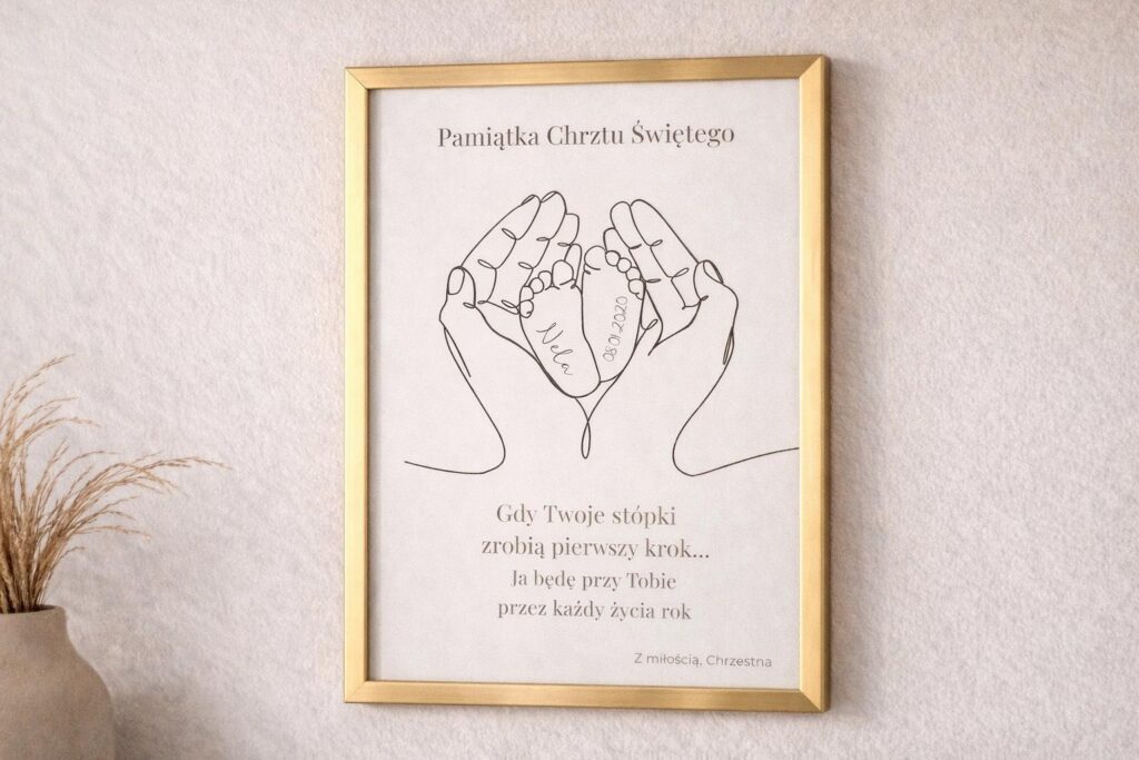 Personalizowany plakat z imieniem, datą oraz dedykacją — przygotowany indywidualnie na zamówienie.